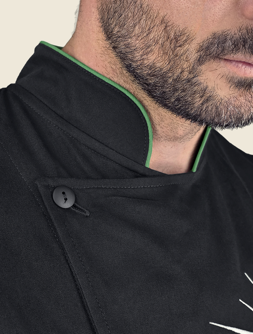 Camisola de una vista y corte semi ajustado. Botones del color de la prenda. Cuenta con una práctica bolsa de parche en la manga izquierda.