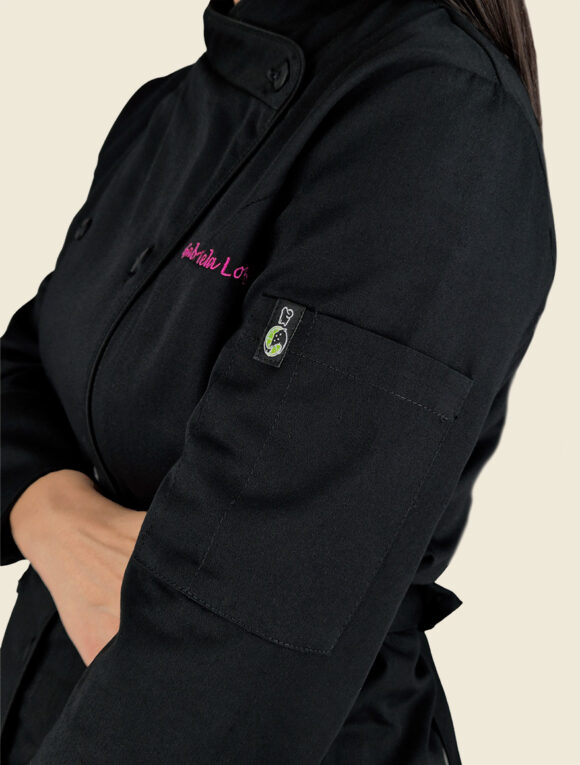 Filipina, con longitud de manga “tres cuartos”, de doble vista y corte semiajustado. Botones mate, del color de la prenda. Bies en el contorno del cuello, delantero y puños, que le confiere un fino acabado. Para una perfecta adaptación a la silueta, integra cintas de ajuste en la espalda, a la altura de la cintura. Cuenta con una práctica bolsa de parche en la manga izquierda.